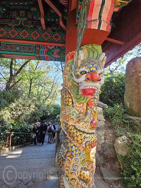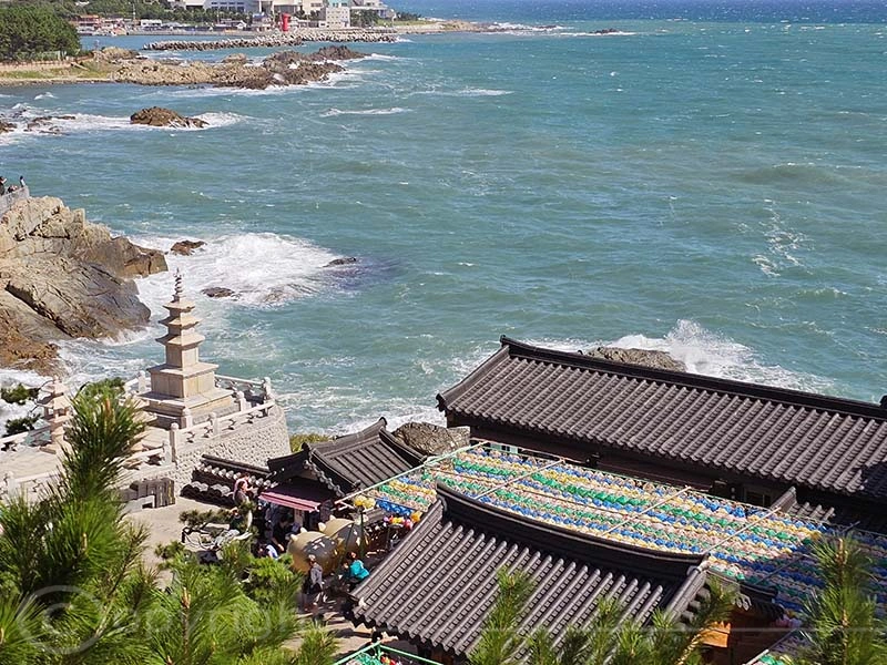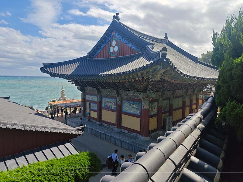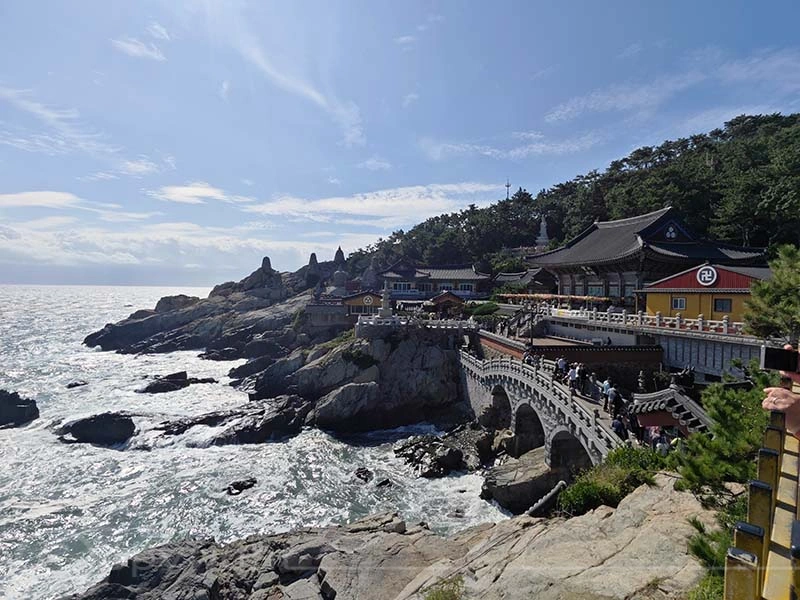 Der Haedong Yonggungsa-Tempel ist ein außergewöhnlicher buddhistischer Ort, der majestätisch auf den steilen Klippen direkt über dem Meer thront. Ursprünglich im Jahr 1376 erbaut, wurde der Tempel während des verheerenden Imjin-Krieges zerstört und erst 1930 wiederhergestellt. Seinen heutigen Namen erhielt er jedoch erst 1974, als der Mönch Jeongam von einem Traum berichtete, in dem er einen Buddha sah, der in weißem Gewand auf einem Drachen gen Himmel flog. Unter den noch erhaltenen Bauwerken des Tempels befinden sich die eindrucksvolle Daeungjeon-Halle sowie die Schreine Gulbeopdang und Yongwangdang. Bei unserem Besuch herrschte perfektes Wetter und verstärkte die friedliche Atmosphäre dieses heiligen Ortes.