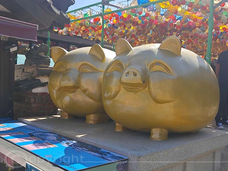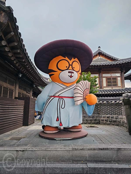In Jeonju begegnet man Tigerfiguren überall als Teil der koreanischen Kultur und Geschichte. Sie erscheinen sowohl in traditionellen Darstellungen als auch in moderner Kunst und stehen als Symbol für Koreas Nationaltier, den Tiger, der heute leider fast ausgestorben ist. Hier einige Exemplare.