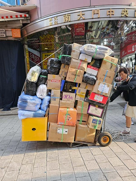Unser Hotel befand sich direkt am Namdaemun-Markt, dem größten traditionellen Markt Koreas, der 1964 eröffnet wurde. Hier findet man eine beeindruckende Vielfalt an Waren – von Kleidung und Küchenutensilien über Spielzeug, Schreibwaren und Accessoires bis hin zu Blumen, Ginseng sowie Wander- und Angelausrüstung. Viele Händler stellen ihre Produkte selbst her, weshalb sie zu besonders günstigen Preisen angeboten werden. Der Markt erstreckt sich nicht nur über die Straßen, sondern auch unter die Erde, wo sich zahlreiche weitere Geschäfte verbergen. Und ratet mal, wer hier besonders oft zu Gast war.