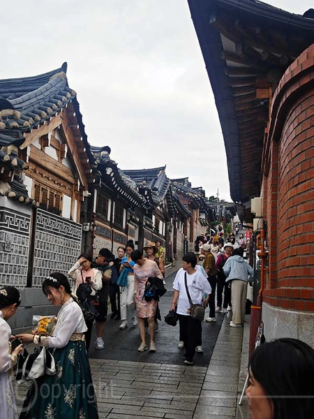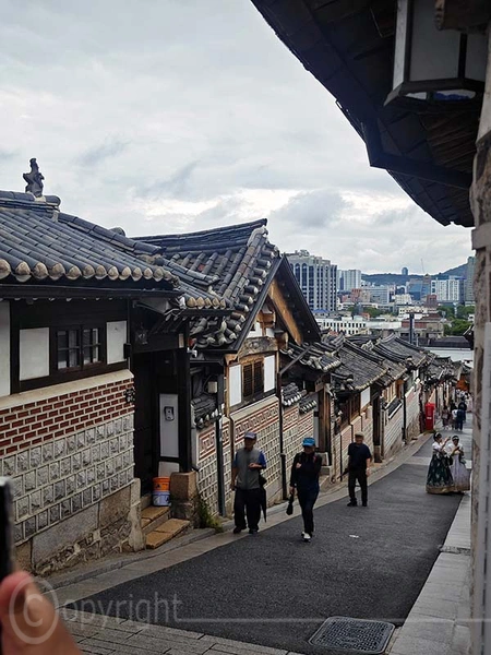 Das Hanok-Dorf Bukchon liegt zwischen den Palästen Gyeongbokgung und Changdeokgung sowie dem Jongmyo-Schrein. Es entstand in der Joseon-Zeit als Wohngebiet des Adels und hat seinen historischen Charakter weitgehend bewahrt, ergänzt durch einige Hanok-Bauten aus den 1930er Jahren. Bei Spaziergang durch die Gassen fühlten wir uns ein wenig nach Kyoto in das Gion-Viertel zurückversetzt.