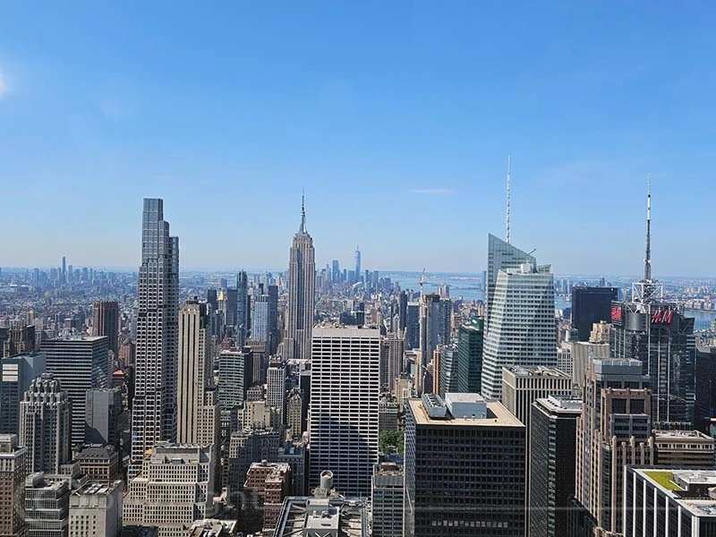 Um New York aus der Vogelperspektive zu erleben, gibt es mehrere Möglichkeiten. Wir besuchten das überfüllte Edge, das One Observatory und – eher spontan – das „Top of the Rock“ im Rockefeller Center. Beim Edge hatten wir leider Pech mit dem Wetter, sodass die Außenterrasse geschlossen blieb. Ähnlich wie das One Observatory fanden wir es insgesamt eher unspektakulär, überlaufen und teuer. Unser klarer Favorit hingegen ist das Rockefeller Center: Von der obersten Plattform genießt man einen uneingeschränkten Panoramablick über die gesamte Stadt.