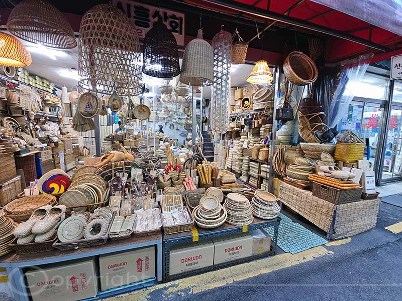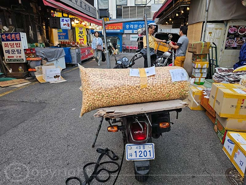 Unser Hotel befand sich direkt am Namdaemun-Markt, dem größten traditionellen Markt Koreas, der 1964 eröffnet wurde. Hier findet man eine beeindruckende Vielfalt an Waren – von Kleidung und Küchenutensilien über Spielzeug, Schreibwaren und Accessoires bis hin zu Blumen, Ginseng sowie Wander- und Angelausrüstung. Viele Händler stellen ihre Produkte selbst her, weshalb sie zu besonders günstigen Preisen angeboten werden. Der Markt erstreckt sich nicht nur über die Straßen, sondern auch unter die Erde, wo sich zahlreiche weitere Geschäfte verbergen. Und ratet mal, wer hier besonders oft zu Gast war.