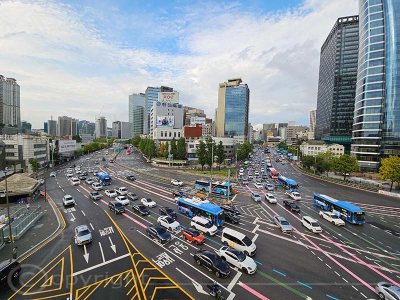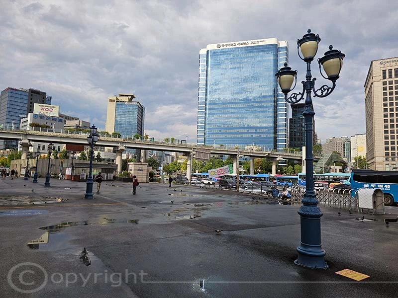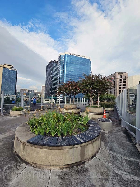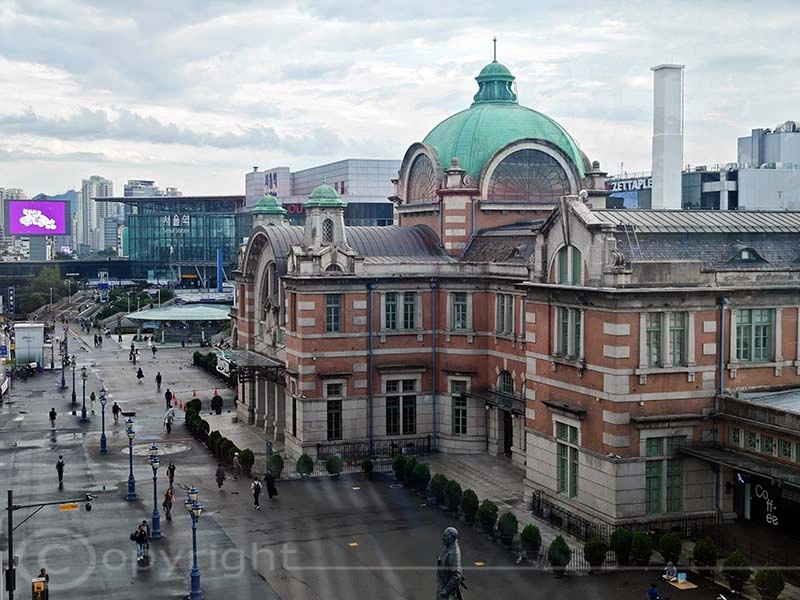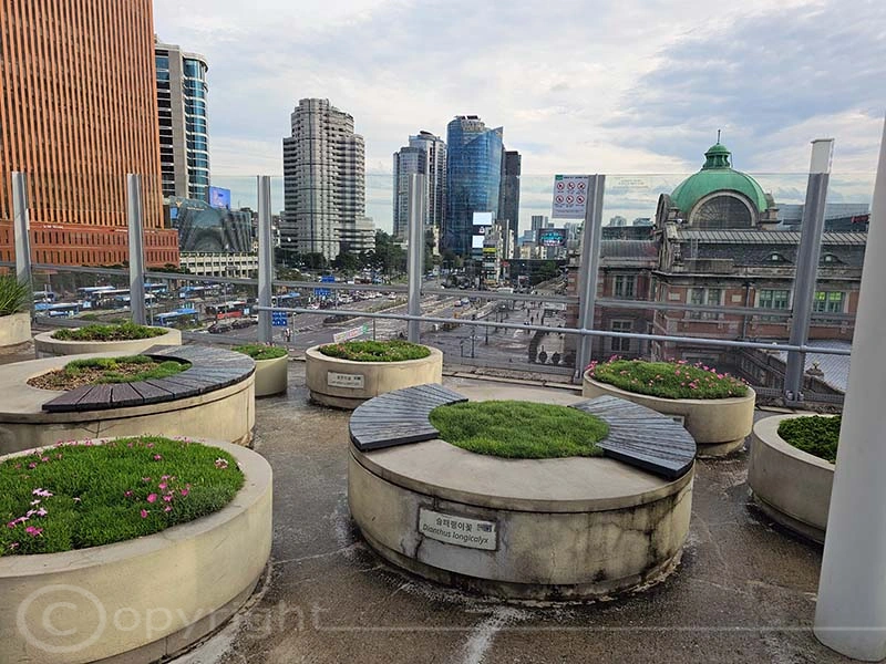 Der alte Bahnhof von Seoul ist ein historisches Wahrzeichen. Er wurde 1925 eröffnet, 2004 mit der Inbetriebnahme des neuen Bahnhofs stillgelegt und 2011 als Kultur- und Ausstellungszentrum wiedereröffnet, wobei seine charakteristische Architektur erhalten blieb. Direkt daneben verläuft die Seoullo 7017, eine rund einen Kilometer lange, begrünte Fußgängerpromenade auf einer ehemaligen Hochstraße. Mit über 24.000 Pflanzen fungiert sie als botanischer Garten im Herzen der Stadt und schafft wertvolle urbane Grünflächen.
