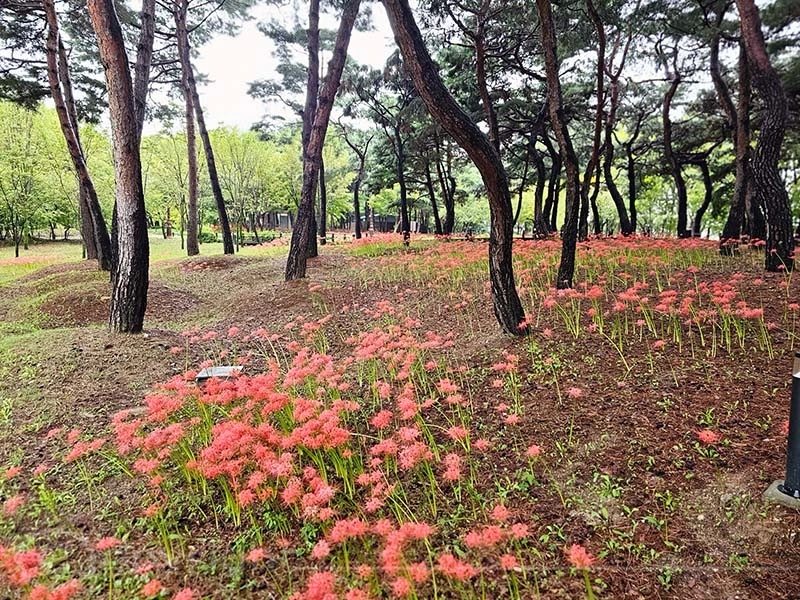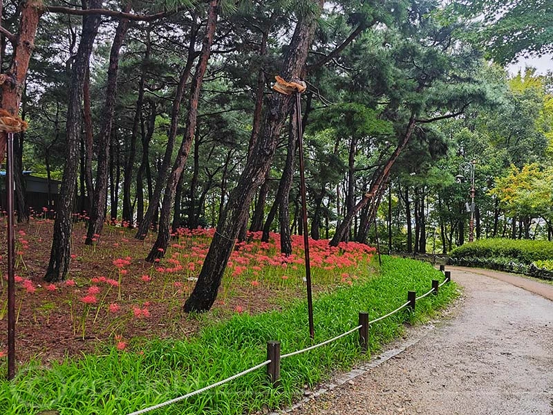 Bei leichtem Regen besuchten wir das Hanbat-Arboretum, das mit dem Regierungskomplex von Daejeon und dem Wissenschaftspark verbunden ist. Als größtes von Menschenhand geschaffenes städtisches Arboretum erfüllt es gleich mehrere Aufgaben: Es dient als Reservoir für genetisch vielfältige Pflanzen, als ökologisches Lernzentrum für Schüler und als Ort der Erholung, an dem Besucher zur Ruhe kommen und in der stillen Atmosphäre der Natur verweilen können.