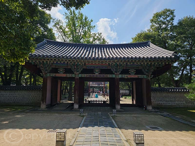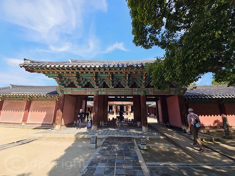 Der Gyeonggijeon-Schrein wurde 1410 erbaut und beherbergt das Porträt von König Tae-jo, dem Gründer der Joseon-Dynastie. Nach Zerstörungen im Imjin-Krieg wurde die Anlage im Jahr 1614 restauriert. Heute begeistert der Schrein Besucher mit seiner eleganten Architektur und den ruhigen, grünen Baumhainen mitten in der Stadt. Auch wir besuchten die alt ehrwürdige Anlage.