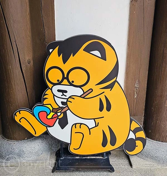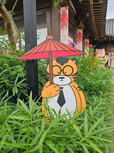 In Jeonju begegnet man Tigerfiguren überall als Teil der koreanischen Kultur und Geschichte. Sie erscheinen sowohl in traditionellen Darstellungen als auch in moderner Kunst und stehen als Symbol für Koreas Nationaltier, den Tiger, der heute leider fast ausgestorben ist. Hier einige Exemplare.