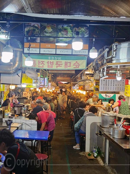 Der Myeongdong Night Market liegt in Myeongdong einem Stadtteil von Seoul und ist für sein Shopping und Streetfood bekannt. Vor allem am Abend kann man das lebhaften Treiben mit vielen Essensständen bewundern. Es werden traditionelle und moderne koreanische Snacks angeboten.