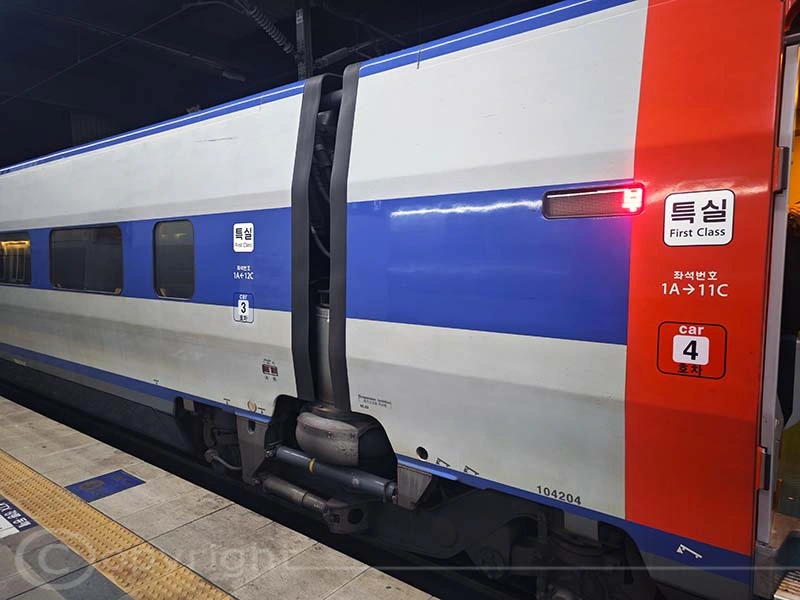Die KTX-Züge, eine Weiterentwicklung des französischen TGV, waren zwar nicht mehr die neuesten, dafür jedoch äußerst gepflegt und sauber. In der ersten Klasse erwartete uns sogar ein kleines „Care-Paket“, und am Ende jedes Wagens stand ein Automaten, an dem man sich kostenfrei mit Wasser versorgen konnte.