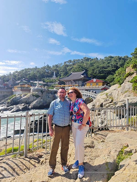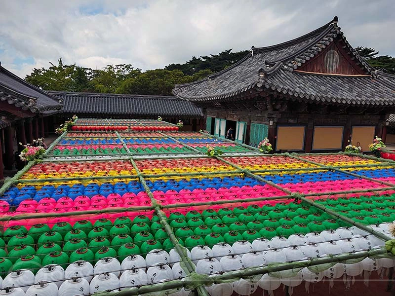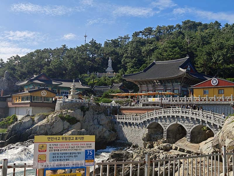 Der Haedong Yonggungsa-Tempel ist ein außergewöhnlicher buddhistischer Ort, der majestätisch auf den steilen Klippen direkt über dem Meer thront. Ursprünglich im Jahr 1376 erbaut, wurde der Tempel während des verheerenden Imjin-Krieges zerstört und erst 1930 wiederhergestellt. Seinen heutigen Namen erhielt er jedoch erst 1974, als der Mönch Jeongam von einem Traum berichtete, in dem er einen Buddha sah, der in weißem Gewand auf einem Drachen gen Himmel flog. Unter den noch erhaltenen Bauwerken des Tempels befinden sich die eindrucksvolle Daeungjeon-Halle sowie die Schreine Gulbeopdang und Yongwangdang. Bei unserem Besuch herrschte perfektes Wetter und verstärkte die friedliche Atmosphäre dieses heiligen Ortes.